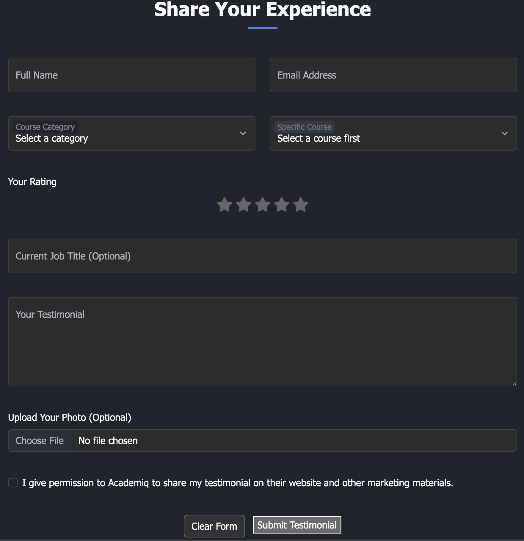 Despite the difficulties, this experience has been incredibly rewarding. Seeing Academiq come to life from scratch has deepened my appreciation for web development, and I now feel more confident in my ability to build and refine web applications. This is just the beginning, and I’m eager to keep learning and improving.