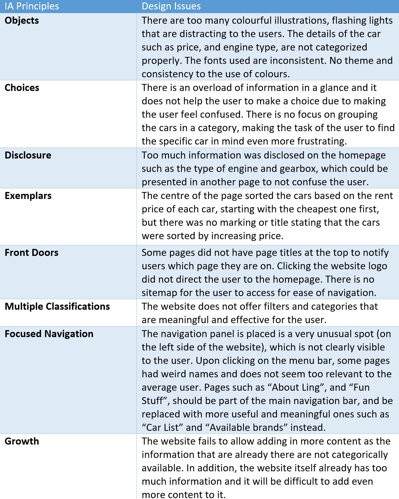 02 - Applying the Eight Principles of Information Architecture proposed by Mr Dan Brown to identify Design Issues