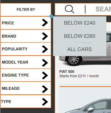 The cars will be represented by their image, name and price. This is done so that users do not feel overwhelmed with so much information like in the current LingsCars page, and can proceed further with more information on the cars by selecting on the car.